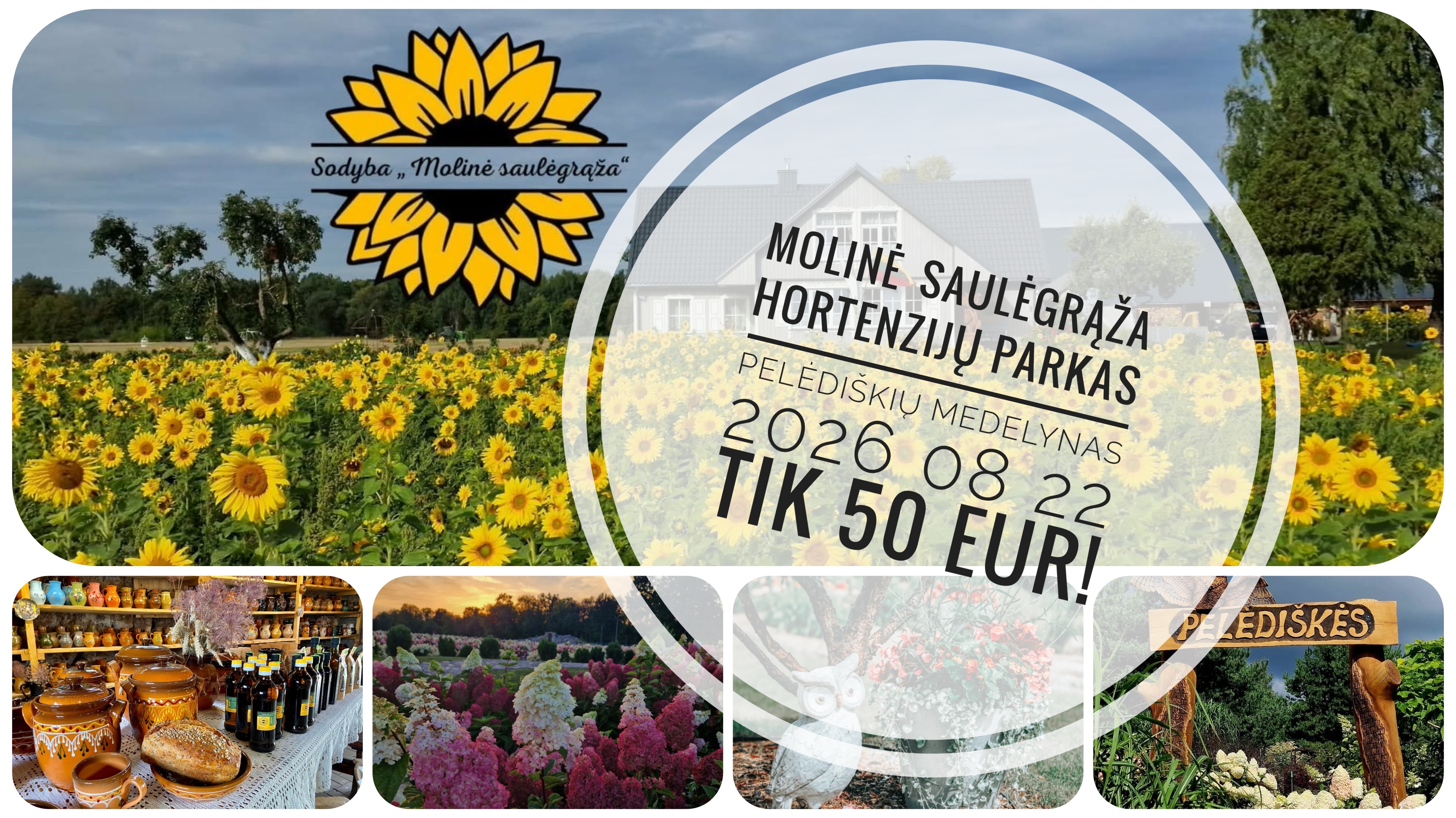 2026 08 22 Žydinti Lietuva: sodyba "Molinė saulėgrąža", Hortenzijų parkas ir Pelėdiškių medelynas - 50 Eur!