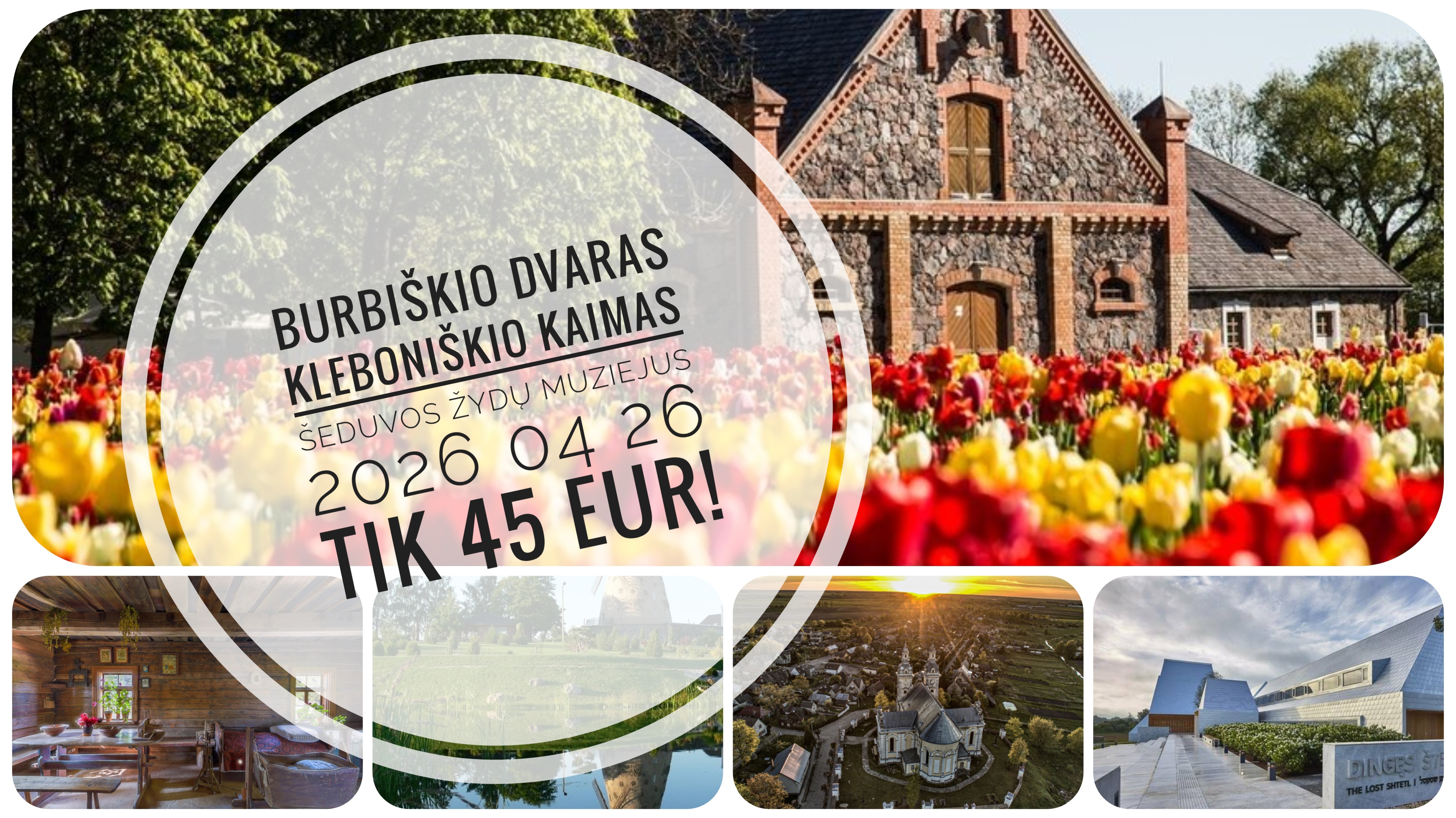 Kviečiame į kelionę, kurios metu pasisvečiuosime tulpių sostinėje – Burbiškio dvare, aplankysime Kleboniškio kaimą, papietausime garsiajame Šeduvos malūne, užsuksime į Šeduvos miestelį ir sužinosime kas yra štetlas Šeduvos žydų istorijos muziejuje.